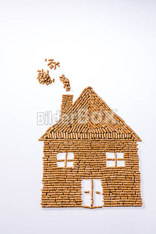 Beschreibung Ein Haus wurde aus Pellets für die Heizung gebaut. Alternative und nachhaltige Energie zum heizen