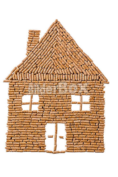 Beschreibung Ein Haus wurde aus Pellets für die Heizung gebaut. Alternative und nachhaltige Energie zum heizen