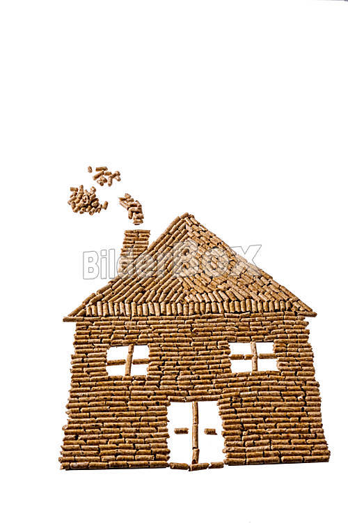 Beschreibung Ein Haus wurde aus Pellets für die Heizung gebaut. Alternative und nachhaltige Energie zum heizen