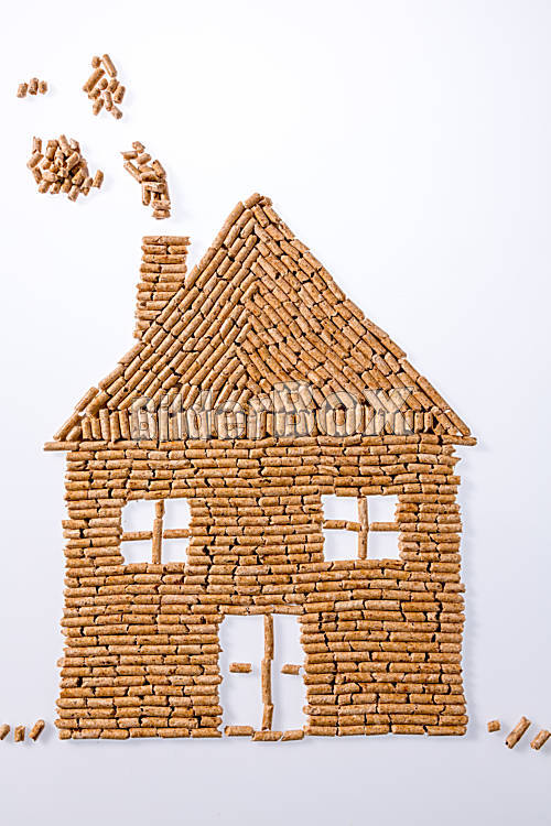 Beschreibung Ein Haus wurde aus Pellets für die Heizung gebaut. Alternative und nachhaltige Energie zum heizen