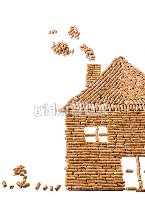 Beschreibung Ein Haus wurde aus Pellets für die Heizung gebaut. Alternative und nachhaltige Energie zum heizen