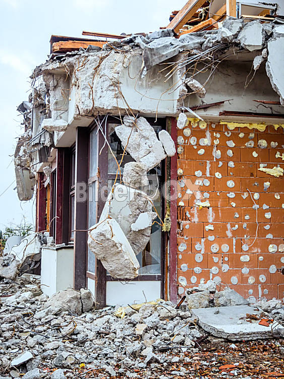 Beschreibung Ein Haus wird abgerissen, um Platz für einen Neubau zu machen.