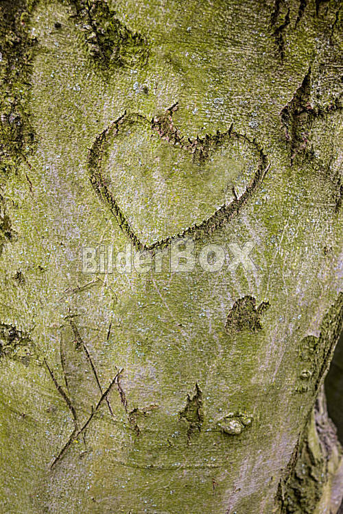 Beschreibung Ein Herz wurde als Schwur für die erste Liebe in einen Baum geritzt. Symbolfoto für Liebe und Valentinstag