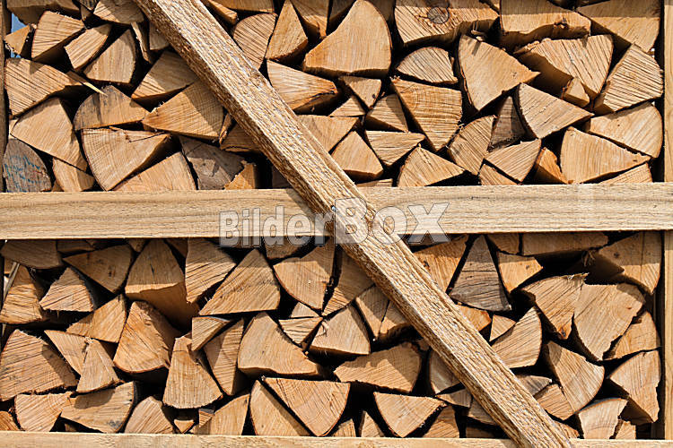 Beschreibung Ein grosser Holz Stapel für Brennholz