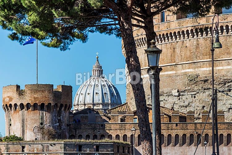 Beschreibung Italien, Rom,Engelsburg (Castel Sant' Angelo) mit Petersdom im HIntergrund