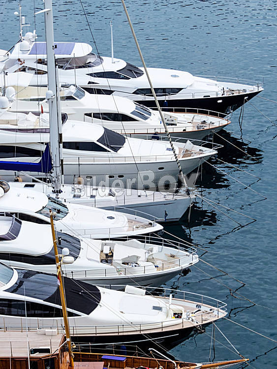 Beschreibung Jachthafen mit Segeljachten, Symbolfoto für Wassersport, Luxus, Urlaub