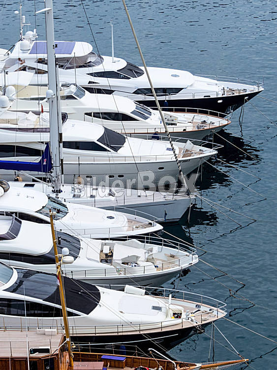 Beschreibung Jachthafen mit Segeljachten, Symbolfoto für Wassersport, Luxus, Urlaub