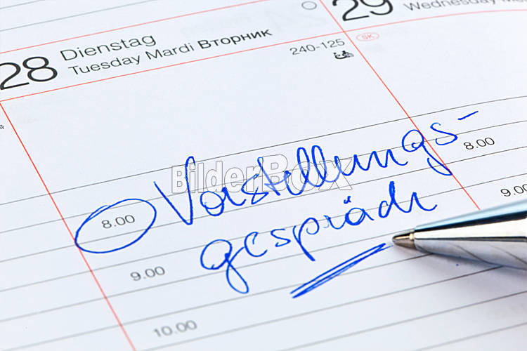 Beschreibung Ein Termin ist in einem Kalender eingetragen: Vorstellungsgespräch