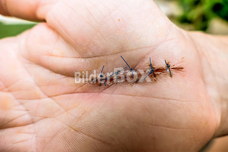 Beschreibung Frisch operierte Hand nach einer Karpaltunnelsyndrom Operation