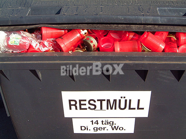 Beschreibung Kerzenreste aus Plastik werden bei einem Friedhof gesammelt Copyright (2001) by BilderBox.com; Erwin Wodicka, A-4062 Thening. AGBs: www.bilderbox.com/agb.html ( in an im auf als einer and und...