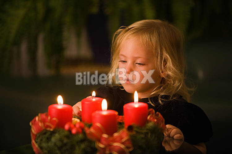 Beschreibung Kind mit Adventkranz zu Weihnachten