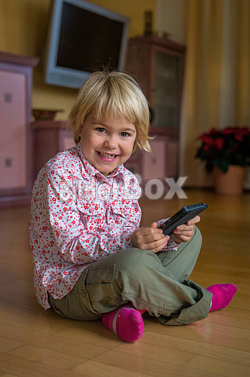 Beschreibung Ein KInd spielt mit einem Handy. Mobiltelefon für Kinder