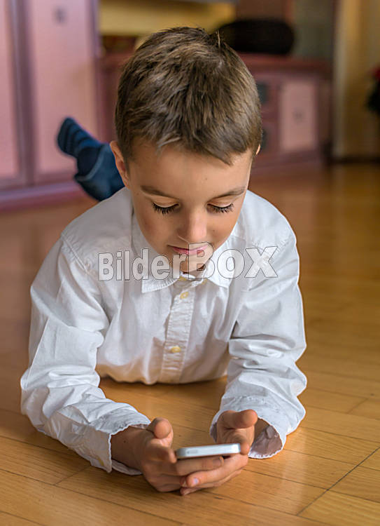Beschreibung Ein KInd spielt mit einem Handy. Mobiltelefon für Kinder