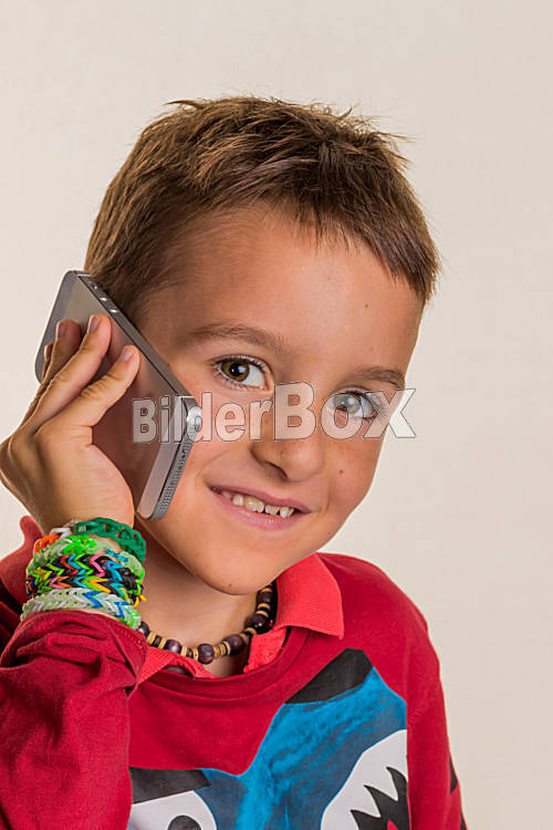 Beschreibung Ein Kind telefoniert mit einem Handy.
