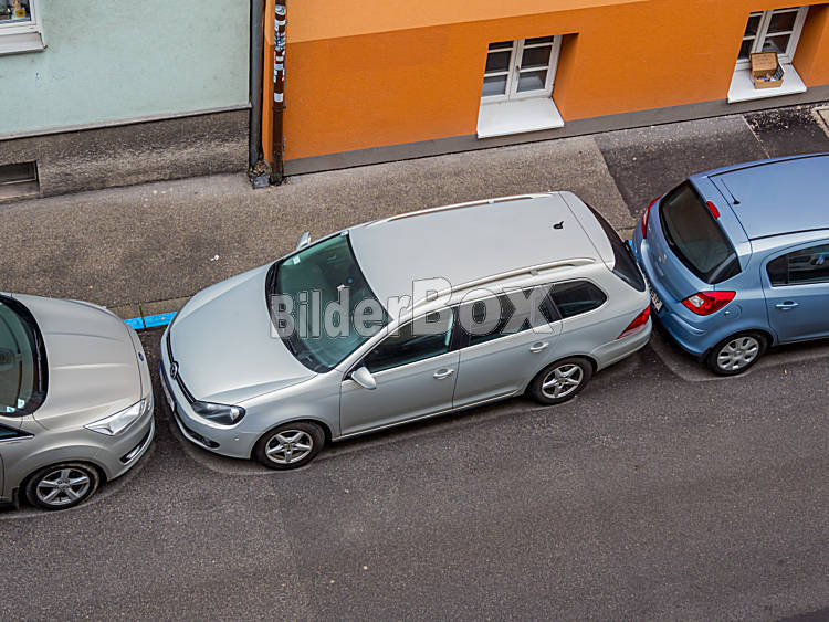 Beschreibung Verparktes Auto auf einer Straße