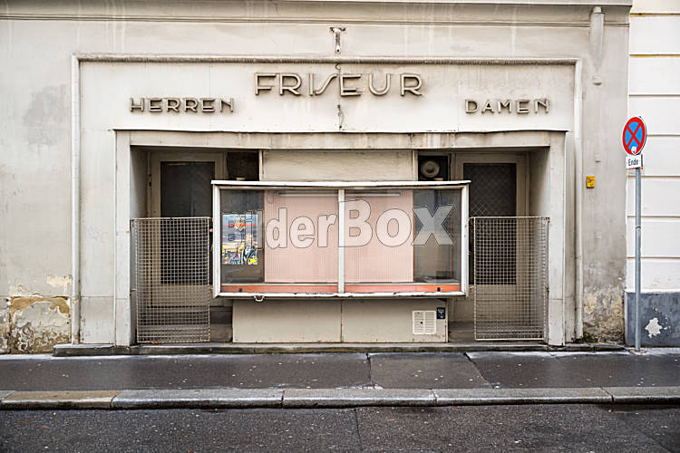 Beschreibung Das Geschäftslokal von einem Friseur wurde aufgelassen. Wien, Österreich