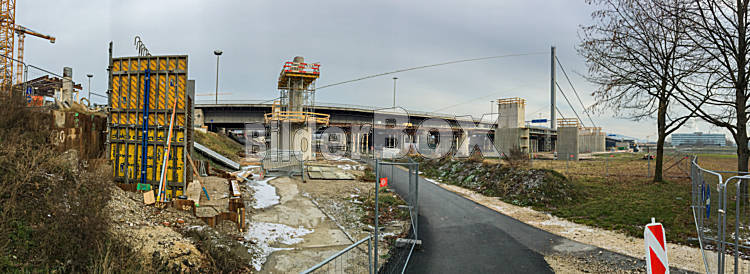 Beschreibung Linz, Österreich, Neubau der Eisenbahnbrücke