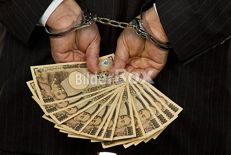 Beschreibung Manager mit japanischen Yen Geldscheinen in der Hand