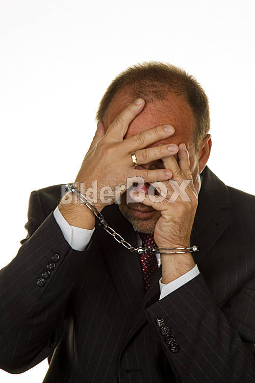 Beschreibung Manager wegen Wirtschafts Krminilaität verhaftet mit Handschellen
