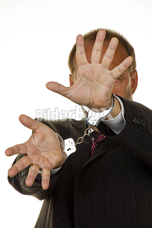 Beschreibung Manager wegen Wirtschafts Krminilaität verhaftet mit Handschellen