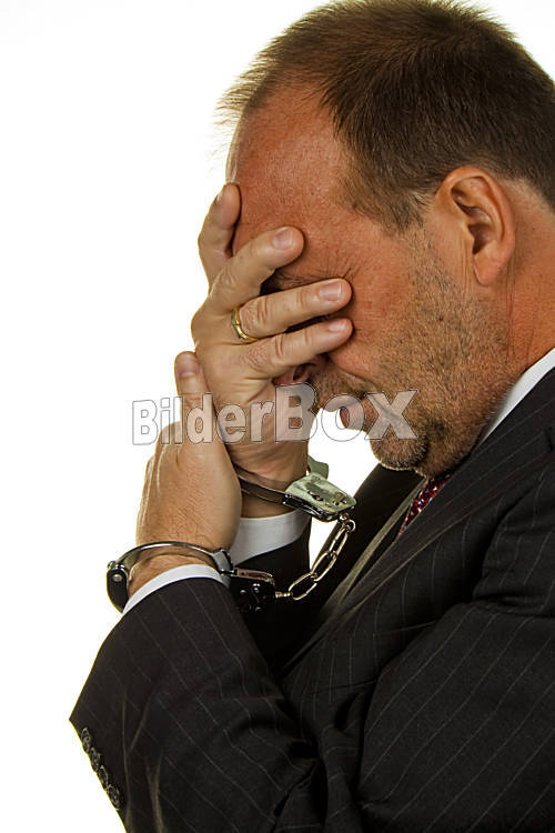 Beschreibung Manager wegen Wirtschafts Krminilaität verhaftet mit Handschellen