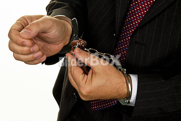Beschreibung Manager wegen Wirtschafts Krminilaität verhaftet mit Handschellen