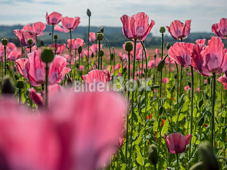 Beschreibung Mohnfeld mit Mohnblumen im Sommer