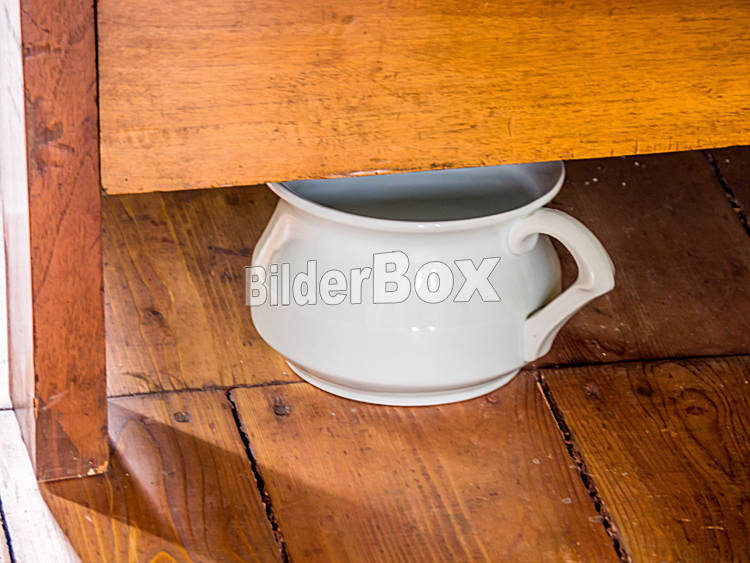 Beschreibung Unter einem Bett steht der Nachttopf für alle Fälle.