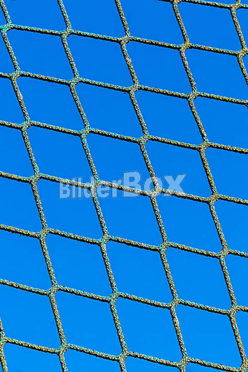 Beschreibung Netz und blauer Himmel, Symbol für Netzwerk, Gefangenschaft, Grenze, Sicherheit