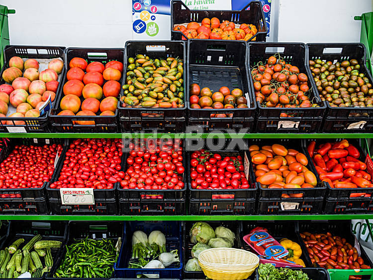 Beschreibung In einem kleinen italienischen Städtchen ein Obst- und Gemüseladen. Viele verschiedene Arten von Tomaten