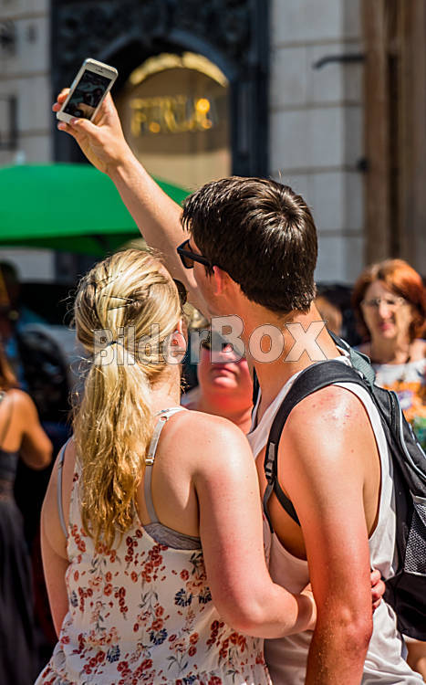 Beschreibung Ein junges Paar macht ein SAelfie-