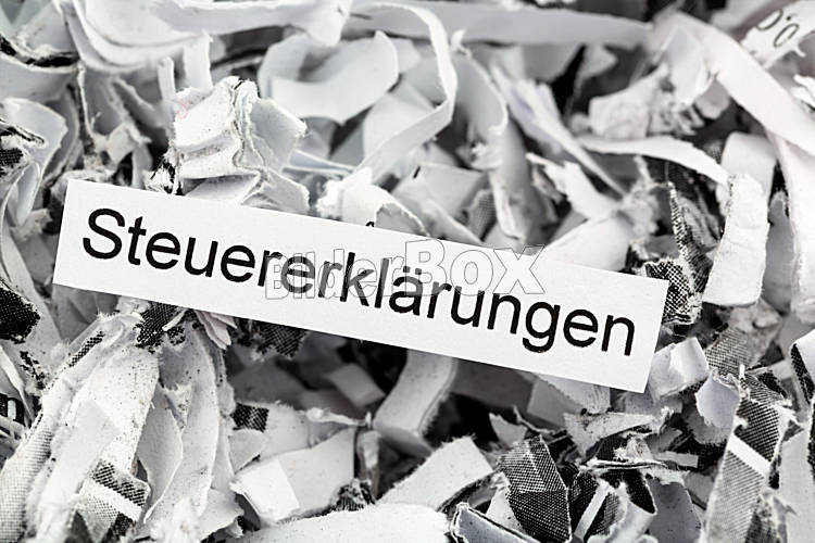Beschreibung Papierschnitzel mit dem Stichwort Steuererklärungen, Symbolfoto für Steuerlast und Aufbewahrungspflicht