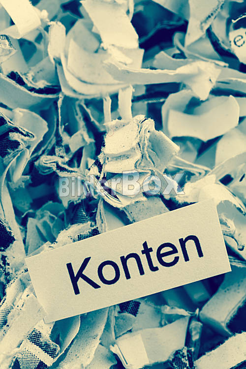 Beschreibung Papierschnitzel mit dem Stichwort Konten, Symbolfoto für Finanzen, Buchhaltung und doppelte Buchführung