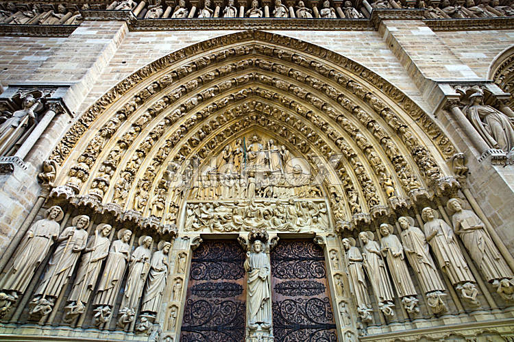 Beschreibung Die Kirche Notre Dame in Paris, Frankreich. Eines der Wahrzeichen der Stadt.