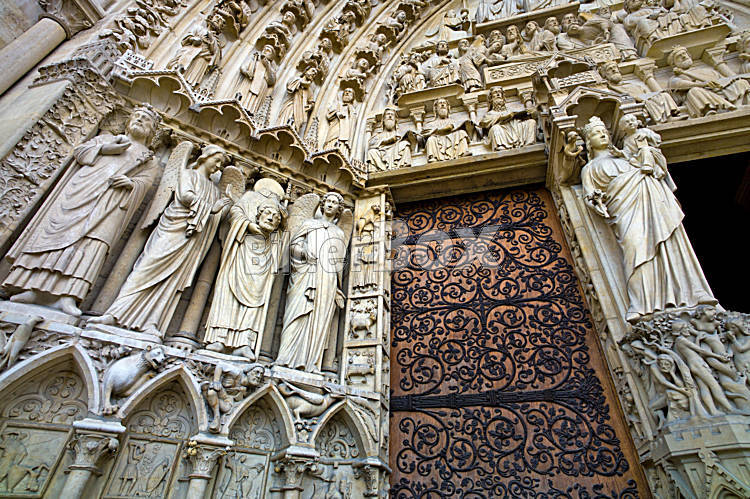 Beschreibung Die Kirche Notre Dame in Paris, Frankreich. Eines der Wahrzeichen der Stadt.