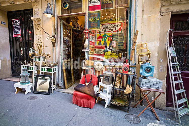 Beschreibung Ein Antiquitäten Laden am Montmartre in Paris, Frankreich.