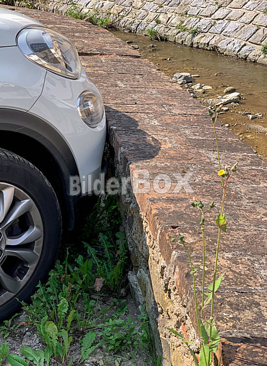 Beschreibung Auto ist an Mauer angefahren. Parkschaden bei einem Auto