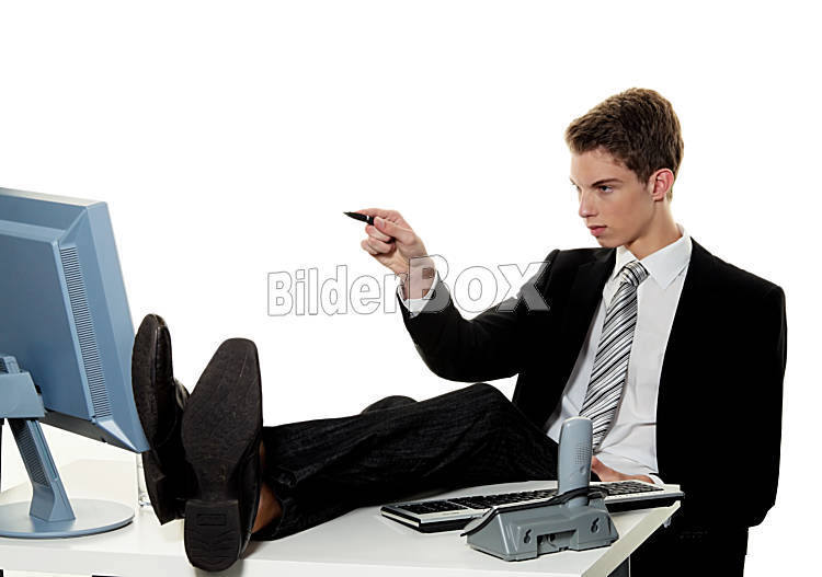 Beschreibung Ein Mann hat Probleme mit Computer Virus und Spam im Büro