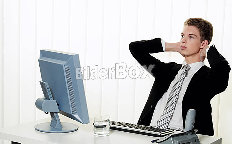 Beschreibung Ein Mann hat Probleme mit Computer Virus und Spam im Büro