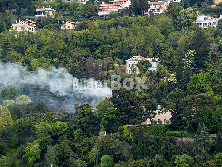 Beschreibung In einer Siedlung werden Schnittrückstände verbrannt.