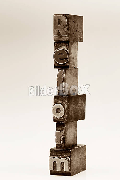 Beschreibung Das Wort " Reform " in Bleibuchstaben geschrieben. Symbolfoto für schnellen Schriftverkehr