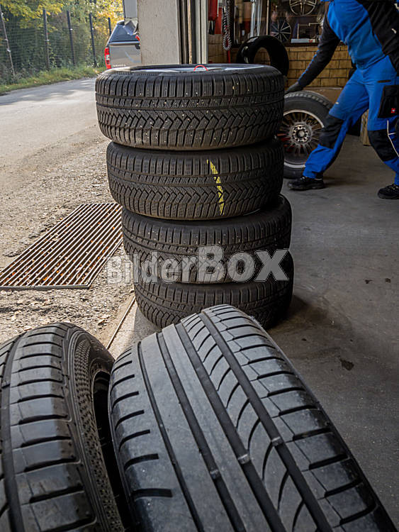 Beschreibung Sommerreifen (unten) werden gegen Winterreifen ausgewechselt. Winterreifenpflicht in Öst. ab 1. November
