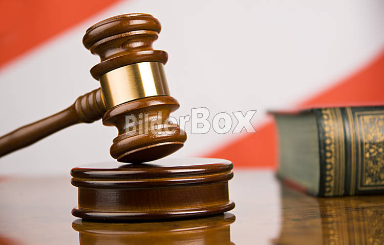 Beschreibung Richterhammer und Österr. Fahne [ (c) www.BilderBox.com, Erwin Wodicka, Siedlerzeile 3, A-4062 Thening, Tel. + 43 676 5103678.Verwendung nur gegen HONORAR, BELEG, URHEBERVERMERK nach AGBs auf...
