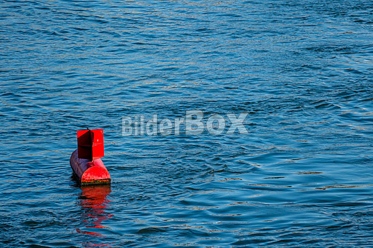 Beschreibung Rote Boje Wasseroberfläche, Symbol für Schifffahrt, Sicherheit, Navigation