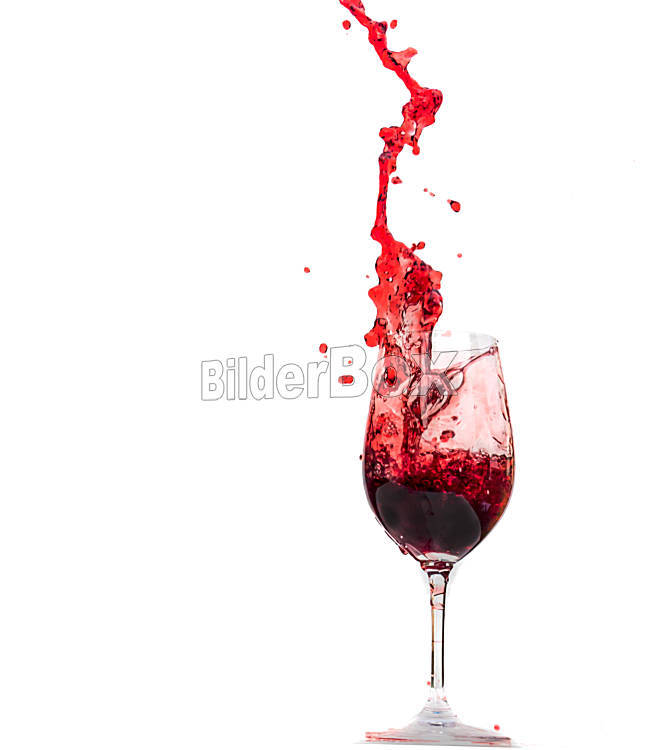 Beschreibung Rotwein wird aus einem Weinglas geschüttet. Wein im Rotweinglas.