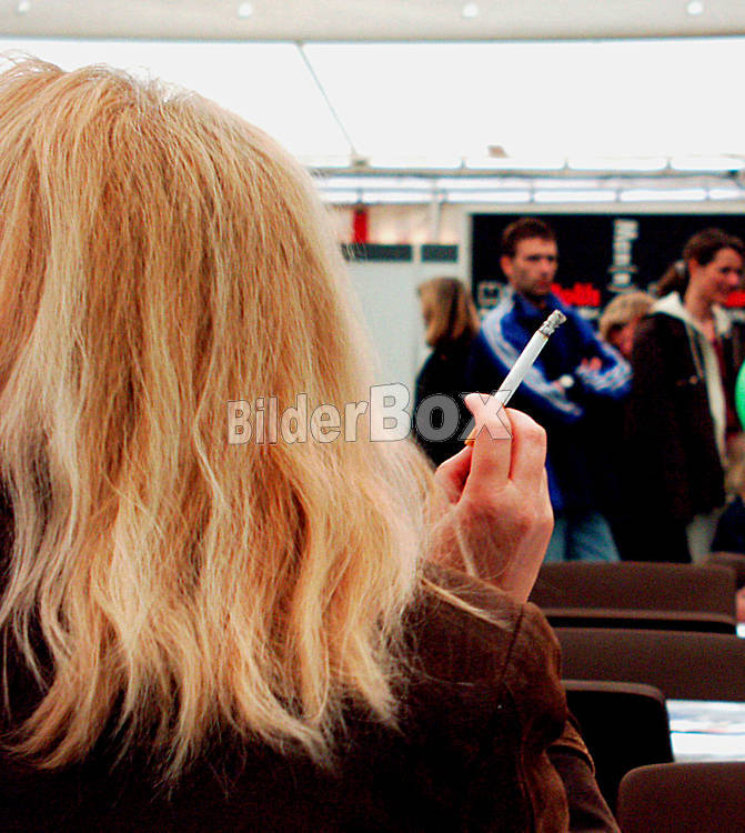 Frau mit Zigarette in einem Raum mit Nichtrauchern
