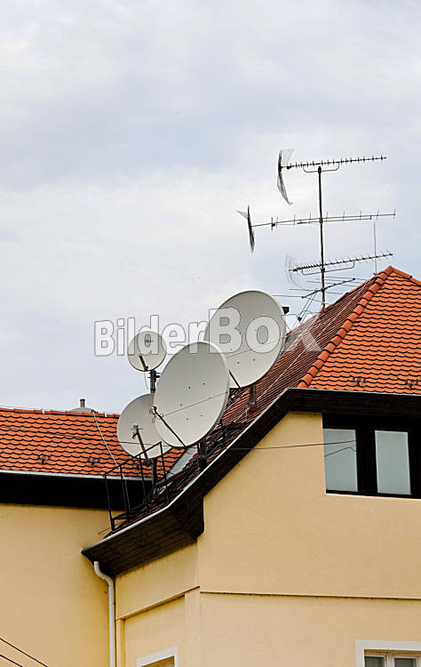 Beschreibung Eine Satelliten Antenne zum Empfang von verschiedenen Fernsehsendern