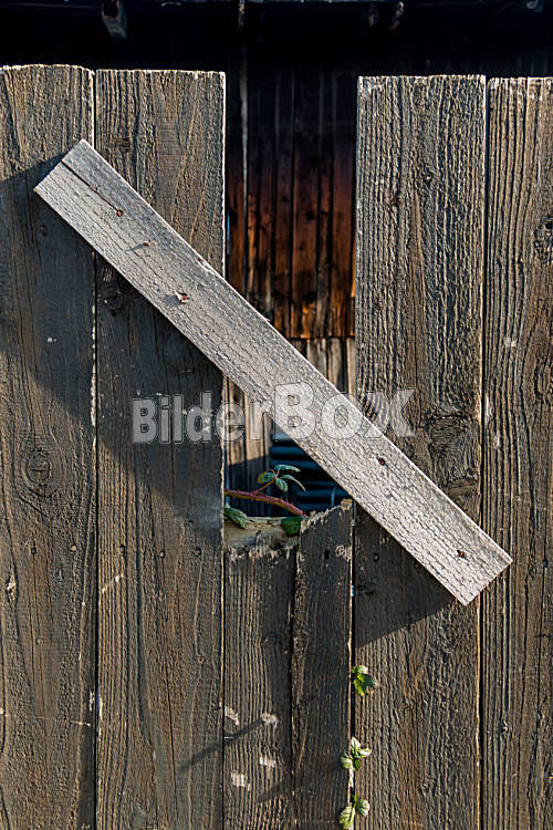 Schößling und alter Bretterzaun