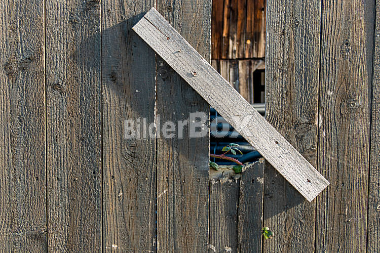 Schößling und alter Bretterzaun