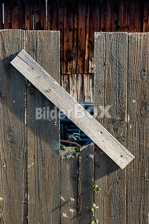 Schößling und alter Bretterzaun